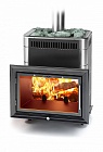 Модификация печи с большим светопрозрачным экраном 58 см, теплообменником, цвет антрацит с нержавеющими вставками