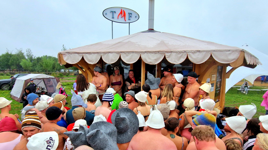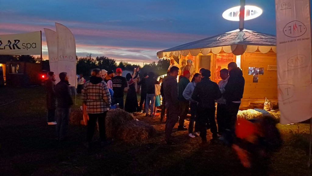 Наша баня стала настоящим центром притяжения: аромат кедрового сруба от наших партнеров Сорокин & Угренинов привлекал любителей попариться несмотря на дождь и холод. Особое внимание привлекла особенная банная печь TMF Джоконда, которая была представлена впервые.